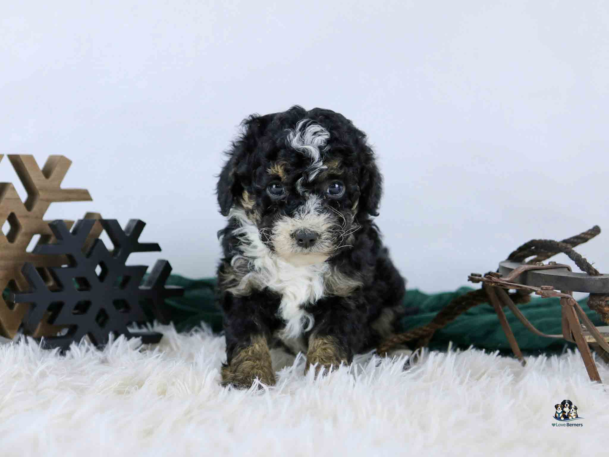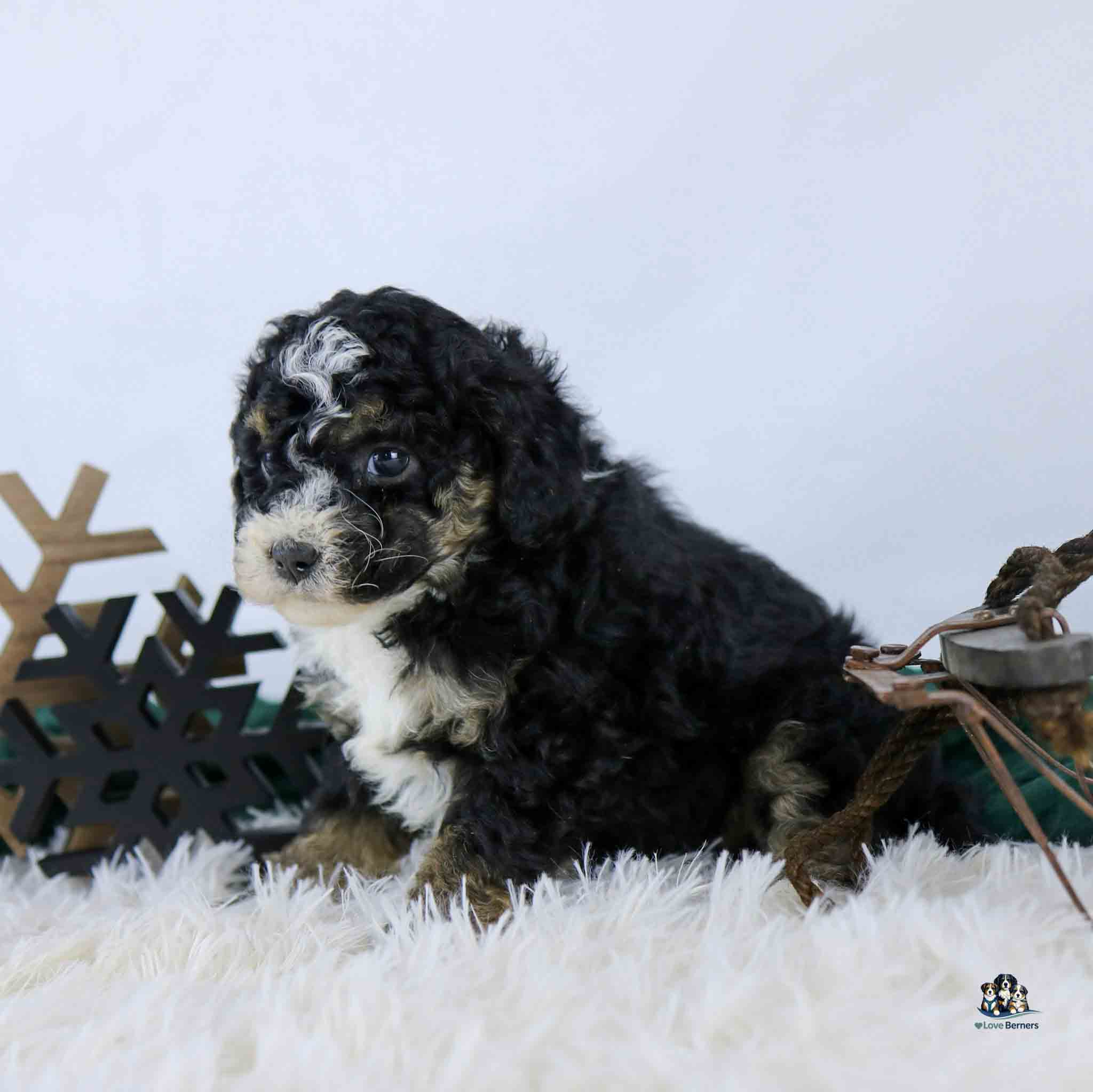 Chloe is a tiny Bernedoodle puppy with a whole lot of love packed into a little fluff ball. She loves cuddles, playtime, and being the center of attention (as she should). Sweet, silly, and irresistibly cute-Chloe is ready to charm her way straight into your heart and home.